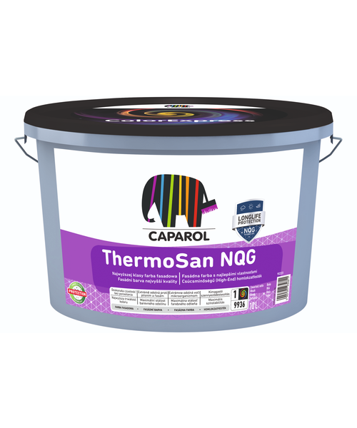 Caparol ThermoSan NQG to silikonowa farba elewacyjna z technologią nanosieci kwarcowych NQG. Tworzy trwałe, wysoce paroprzepuszczalne i odporne na zabrudzenia powłoki. Zawarte biocydy ograniczają rozwój glonów i grzybów na elewacji.